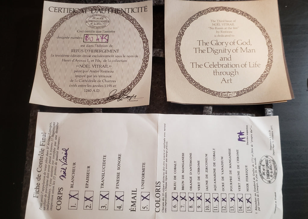 This is the third issue in the Adoration of the Kings collection issued under the name of Henri D'Arceau. It is from the Noel Stained glass collection painted by Andre Restieau inspired by the stained glass windows of the Cathedrale de Chartres created between 1195 and 1240 AD.