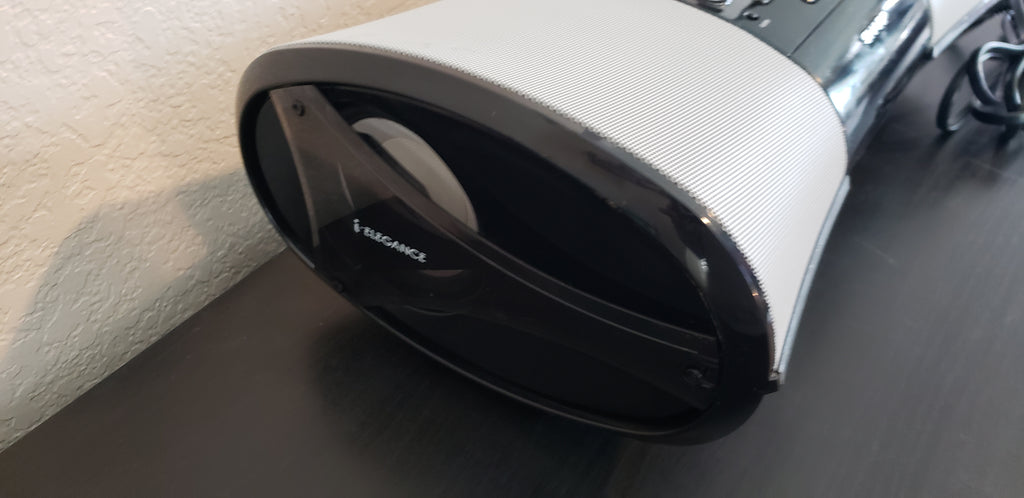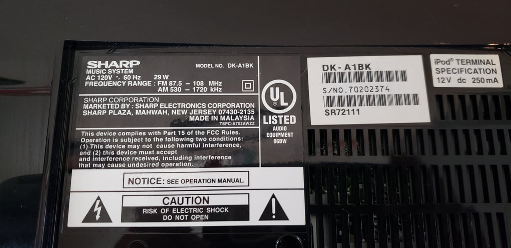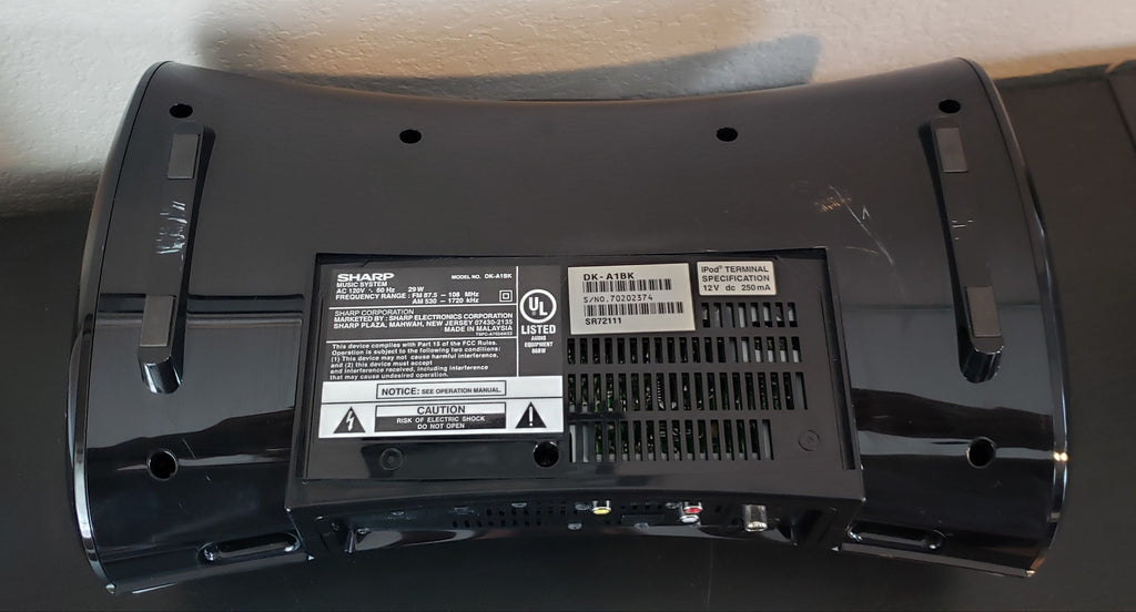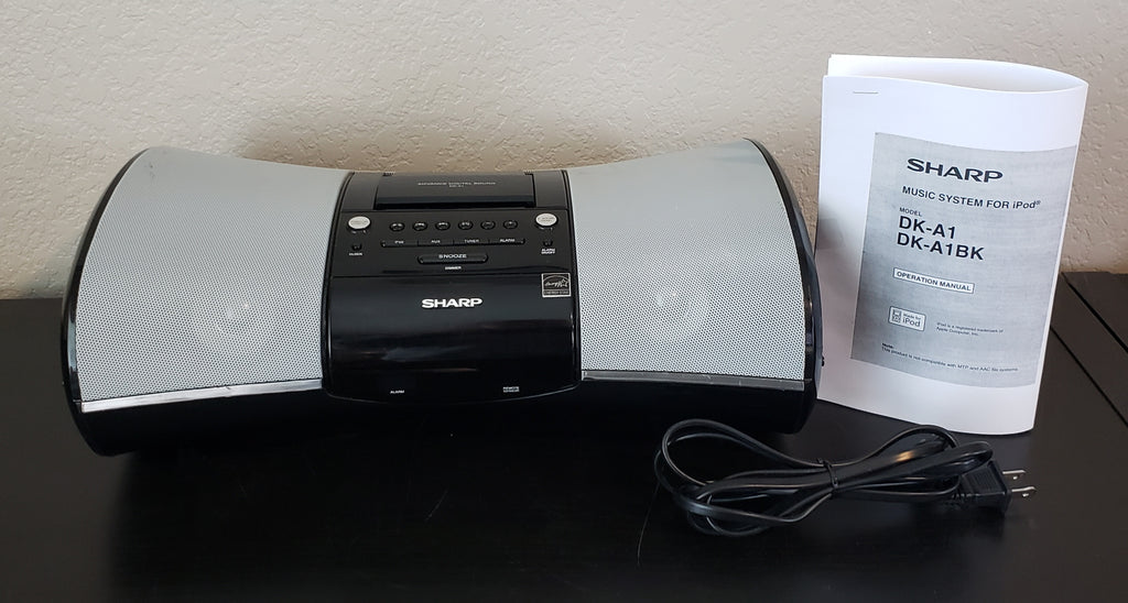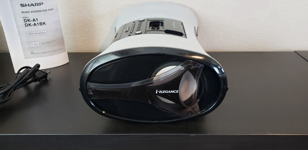 The Sharp DK-A1 i-Elegance includes a built-in iPod dock and an AM/FM clock radio, making it a handy, compact music system for your nightstand or den. The system's two full-range speakers and side-firing subwoofers deliver clean, spacious sound with full, solid bass. The remote lets you adjust the volume from across the room, and start, pause, and skip tracks on your docked iPod. A composite video output lets you connect the i-Elegance to your TV to view the videos and photos stored on your player.