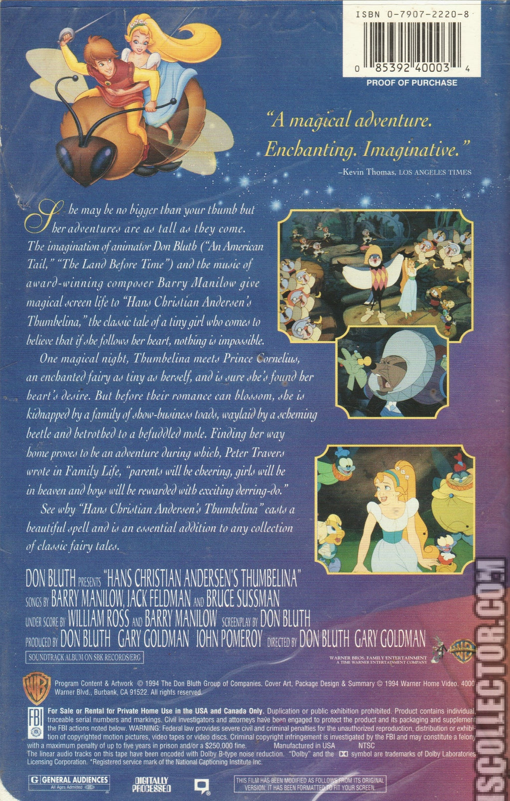 Born of a flower and growing to only a couple of inches tall, poor Thumbelina is worried she'll never meet someone her own size, until she happens to catch the eye of Prince Cornelius of the Fairies. Just as soon as she finds love, however, it's torn away from her when she is kidnapped by Ms. Toad. Now Thumbelina has to escape Ms. Toad's grasp and search for Prince Cornelius. Luckily, there's a whole city of animals willing to help her.
